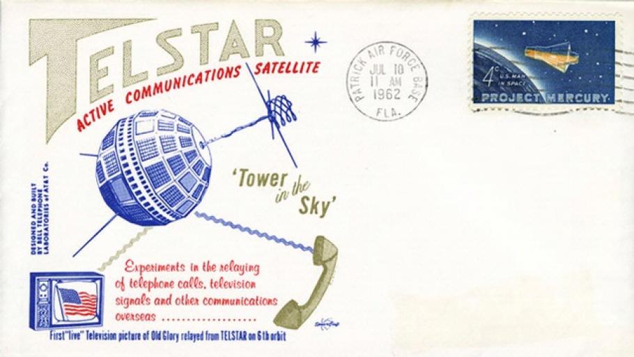 A postal cover issued on July 10, the date of Telstar's launch. - Smithsonian National Air and Space Museum
